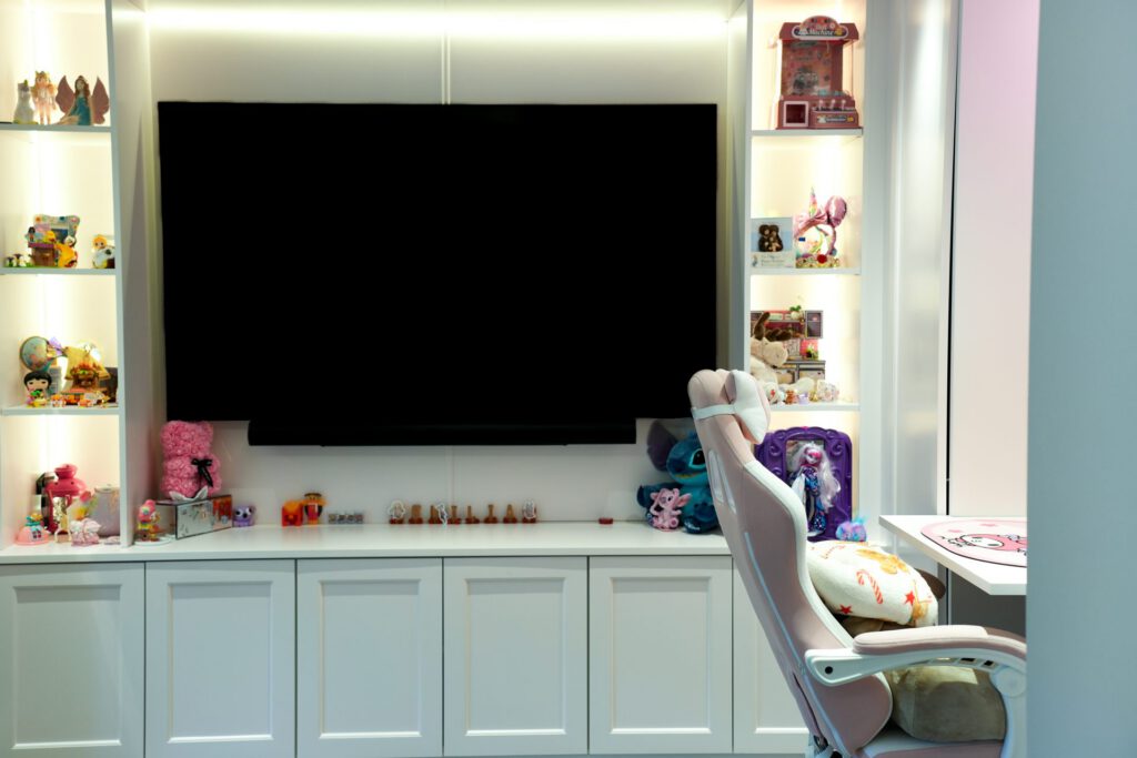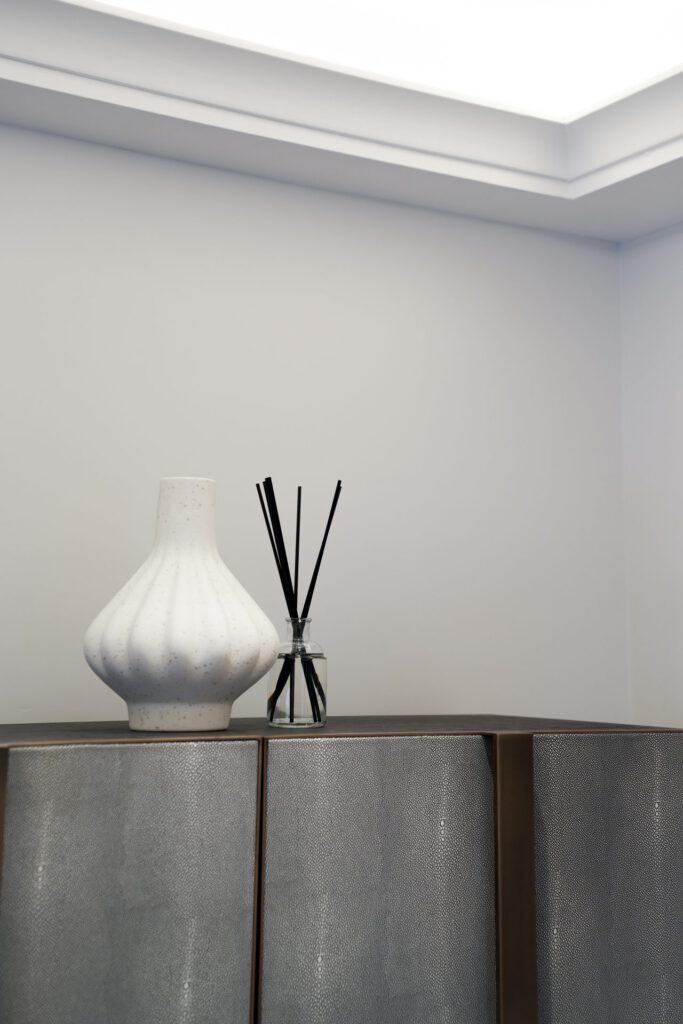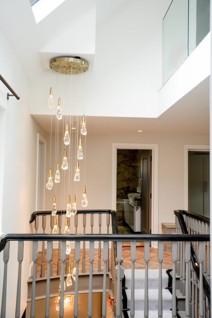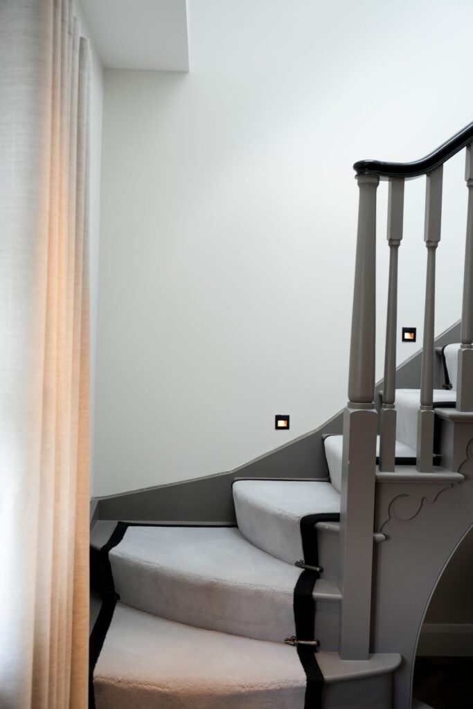 The interior design was guided by a desire for calm, relaxing spaces with thoughtful pops of colour. The clients wished to retain some of their existing furniture, which we carefully integrated into the new design. In some areas, like the children’s playroom, we had full creative freedom, resulting in a vibrant, playful haven bursting with colour and character.