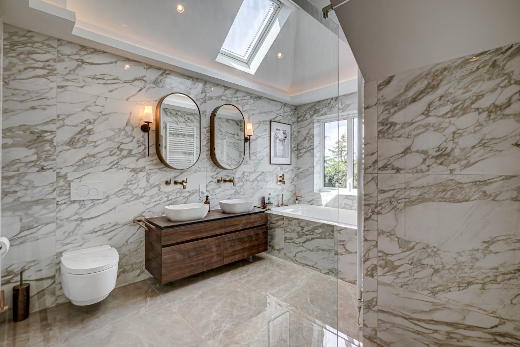 Above, the loft conversion adds a layer of luxury, with bespoke finishes and carefully considered materials that balance style with lasting functionality. Light dances across surfaces, highlighting the clean lines, rich textures, and subtle touches that make the interiors feel both contemporary and enduring.