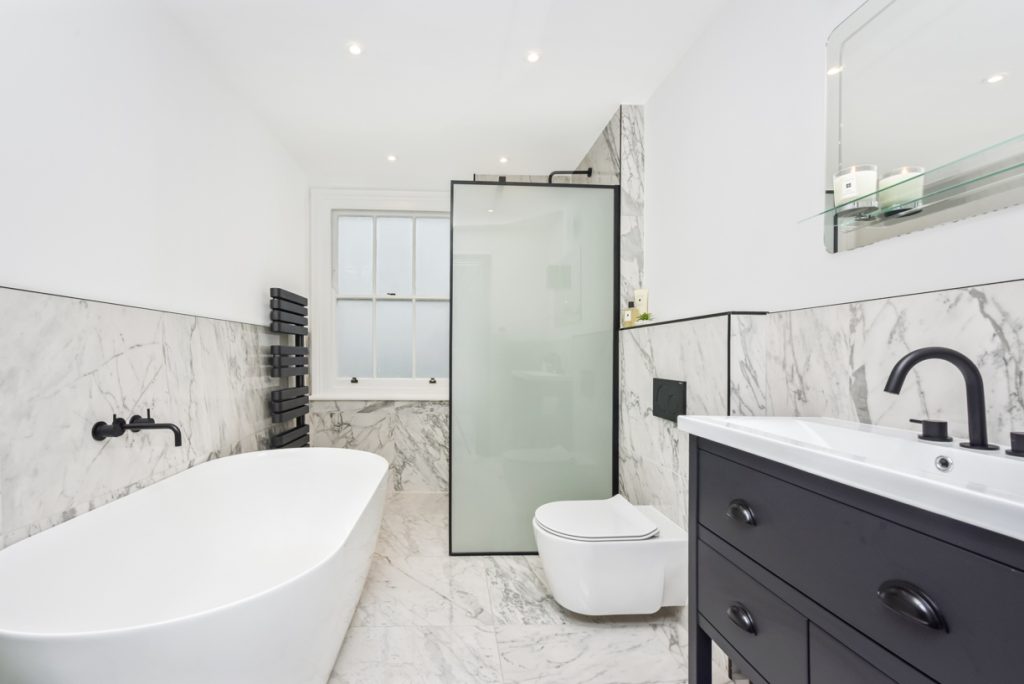 A restrained palette of black, white, and soft greys sets the tone throughout, allowing sleek finishes and tailored details to take centre stage. Clean lines and considered materials create a sense of calm confidence, while subtle references to the building’s heritage ground the design in its urban setting.
