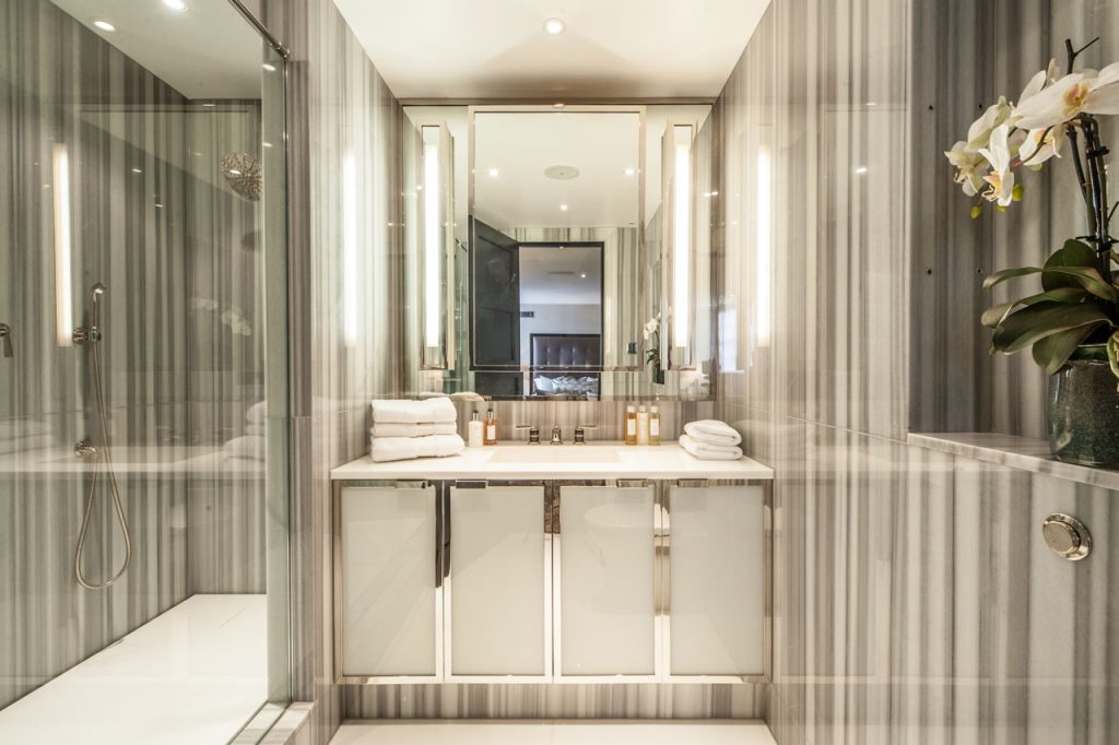 Marble floors stretch beneath your feet, reflecting light and amplifying the sense of space, while underfloor heating adds comfort to this refined environment. Bespoke joinery and curated finishes define each room, combining form and function with effortless sophistication.