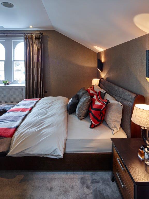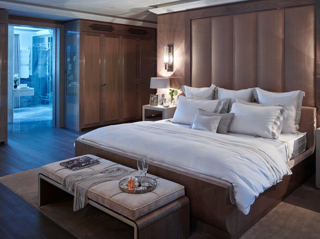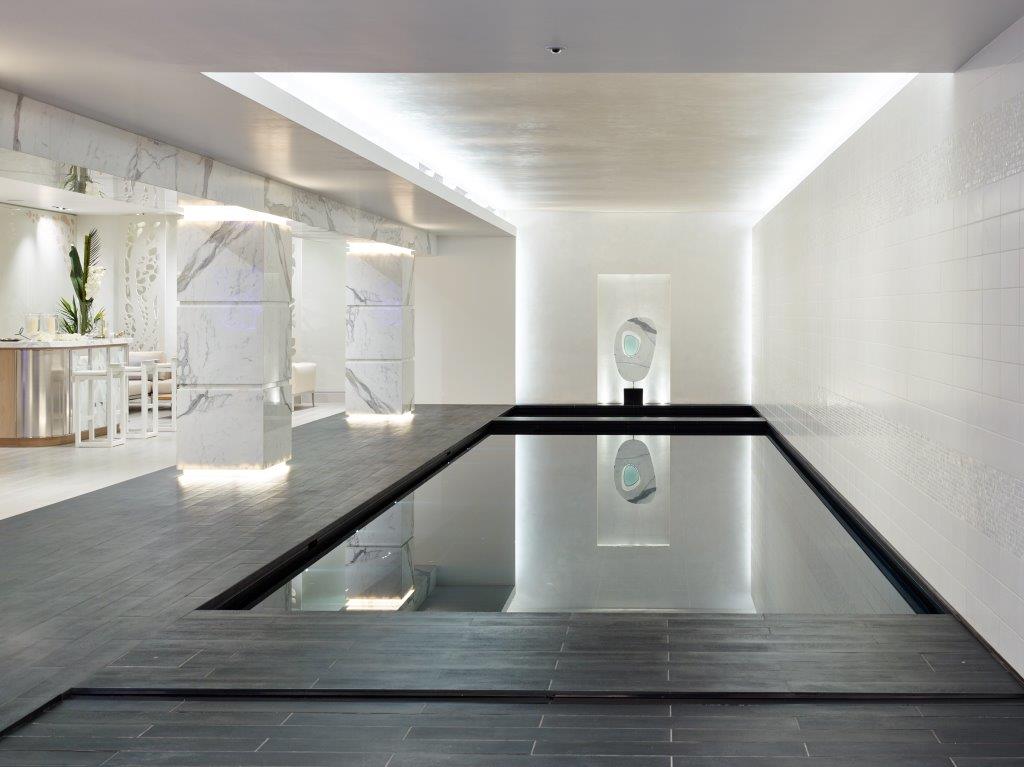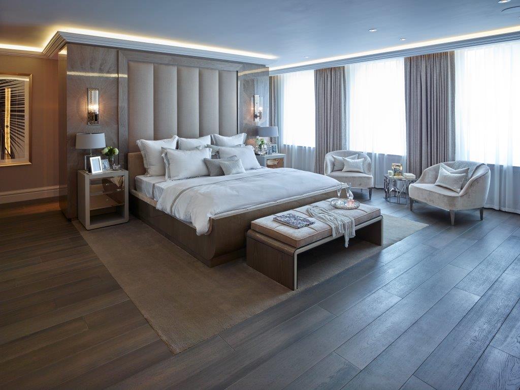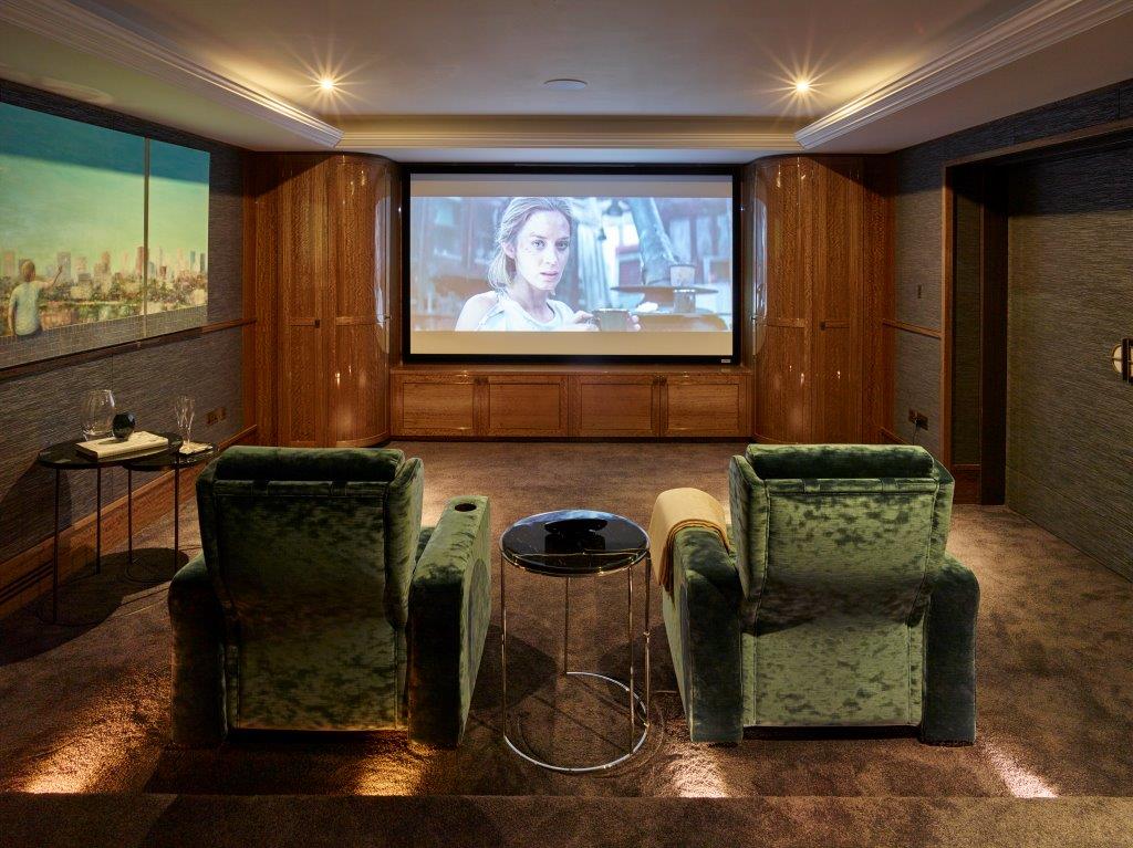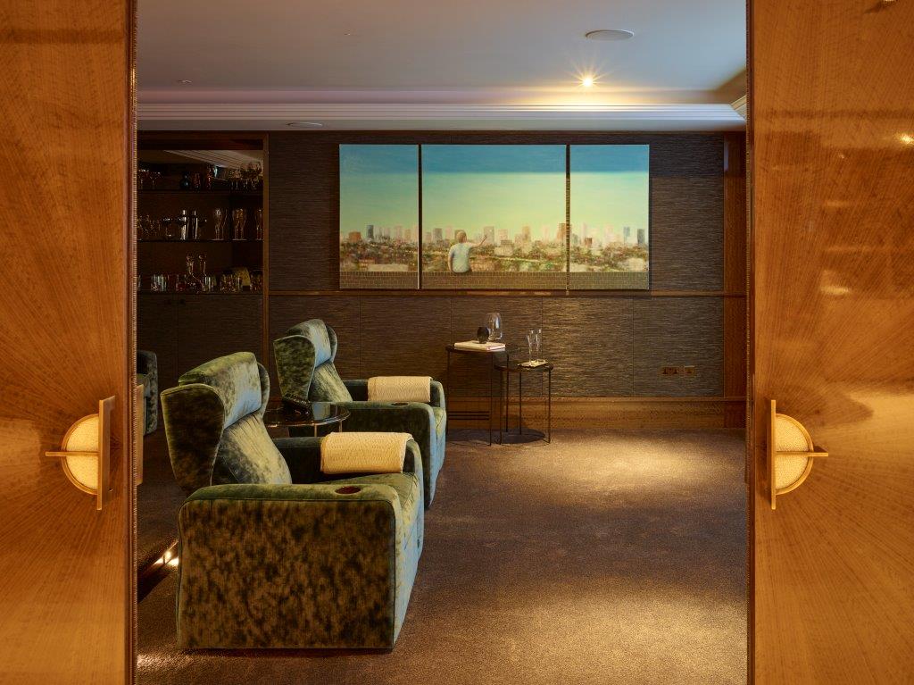 Sunlight spills across marble floors, casting patterns that dance over bespoke woodwork and designer fixtures. Bedrooms open as private retreats, each with its own lavish ensuite, offering calm and sanctuary within the city’s pulse. Beyond, the home comes alive: the swimming pool shimmers in quiet reflection, the spa exudes serenity, and the cinema room transforms into a stage for unforgettable evenings.